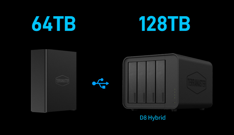 鐵威馬F8 SSD Plus采用先進(jìn)的硬件配置,搭載高性能處理器和大容量?jī)?nèi)存,確保數(shù)據(jù)處理的高效性和穩(wěn)定性。其支持多盤位擴(kuò)展,最大可支持高達(dá)64TB的存儲(chǔ)空間,滿足用戶不斷增長(zhǎng)的數(shù)據(jù)存儲(chǔ)需求。此外,通過(guò)USB3.2 10Gbps接口,F8 SSD Plus還能輕松連接USB外置存儲(chǔ)設(shè)備,實(shí)現(xiàn)存儲(chǔ)空間的進(jìn)一步擴(kuò)展。例如,與TerraMaster D8 Hybrid搭配使用,可額外增加高達(dá)128TB的存儲(chǔ)空間,滿足您不斷增長(zhǎng)的數(shù)據(jù)存儲(chǔ)需求。