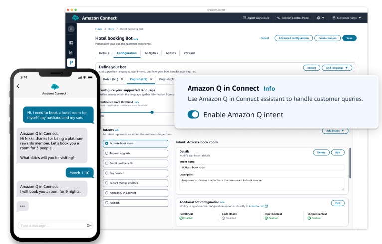 Amazon Q in Connect現(xiàn)已集成生成式AI功能,提升了自助客戶服務(wù)的水平,能夠為客戶提供與人工坐席相媲美的個性化回應(yīng)、主動服務(wù)以及進行上下文理解。企業(yè)得以在文字和語音渠道上迅速構(gòu)建、測試并優(yōu)化由AI驅(qū)動的自助服務(wù)體驗,實現(xiàn)定制化的回復(fù)和主動服務(wù)。例如,當(dāng)客戶詢問他們的航班有哪些改簽選項時,Amazon Connect將訪問并分析客戶的具體信息,隨后作出回復(fù)。這一過程包括檢查客戶的航空公司狀態(tài)(如常旅客等級)、確認(rèn)當(dāng)前艙位,并基于航空公司的政策來評估資格。利用這些數(shù)據(jù),Amazon Connect能夠提供定制化的回答,根據(jù)客戶的狀態(tài)、偏好和資格來推薦改簽選項。在適當(dāng)且符合規(guī)定的情況下,它還可以自動為客戶預(yù)訂新機票。此外,Amazon Connect能夠在必要時自動將對話轉(zhuǎn)接給人工坐席,提供詳盡的溝通摘要,共享收集到的所有客戶相關(guān)數(shù)據(jù)和上下文信息,確保坐席能夠無縫接手對話,避免客戶重復(fù)提供信息。