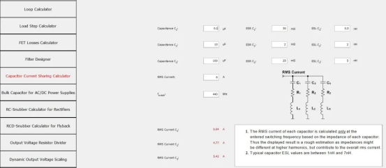 圖 3顯示了 TI 的 Power Stage Designer 電容器均流計(jì)算器的輸出。