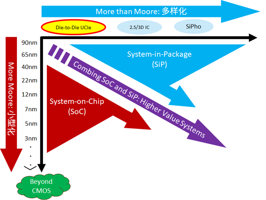 目前,基于UCIe的Multi-Die Chiplet是實現More than Moore的重要手段,結合先進的2.5D和3D封裝技術已經實現產業(yè)化的高效量產與推廣,成為國內外HPC芯片的主流設計選擇。