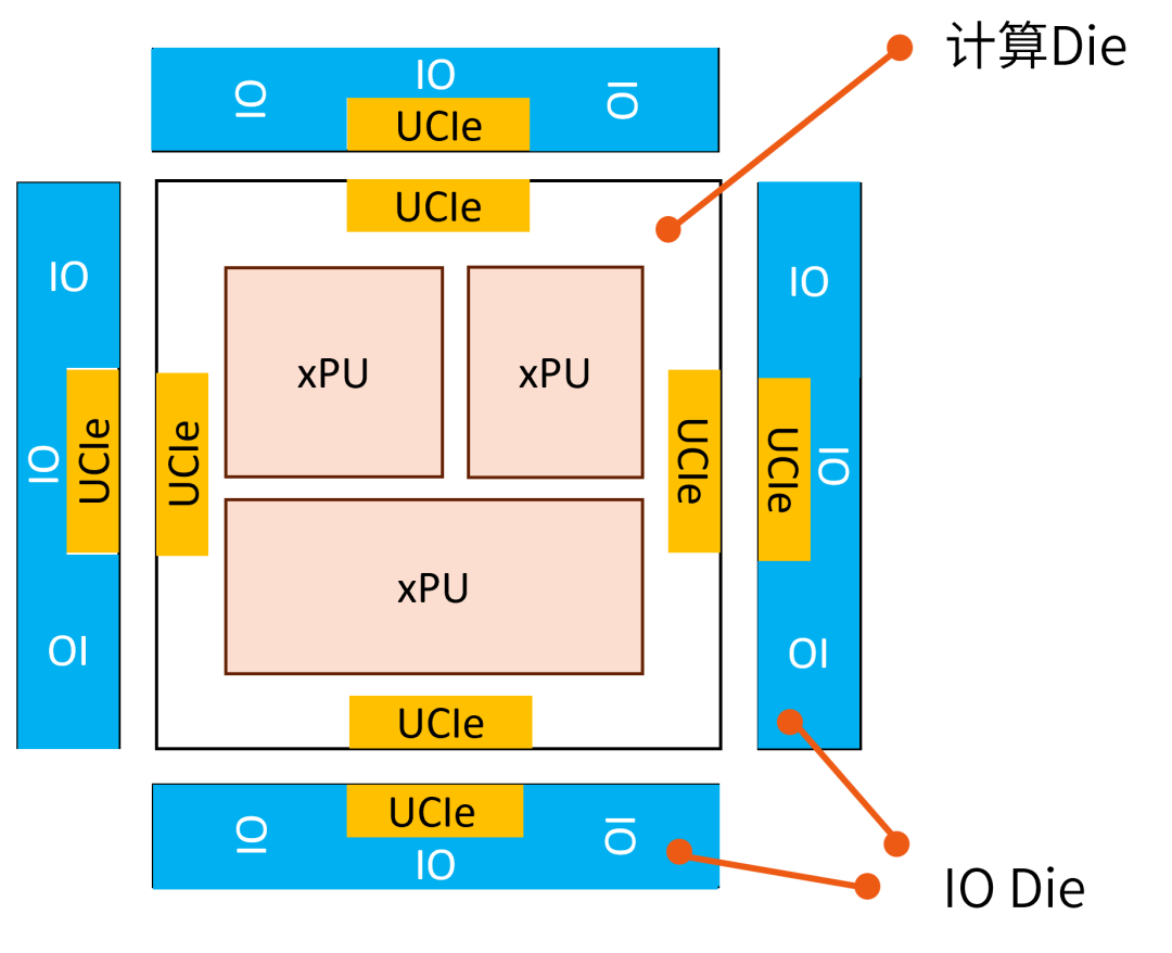 另外一種是UCIe+SerDes+PCIe等IP組成一個獨立的IOD,并跟計算Die做互連,從而形成IOD和計算Die在功能上的分離。根據客戶需求不同芯片可以采用不同的使用方式。