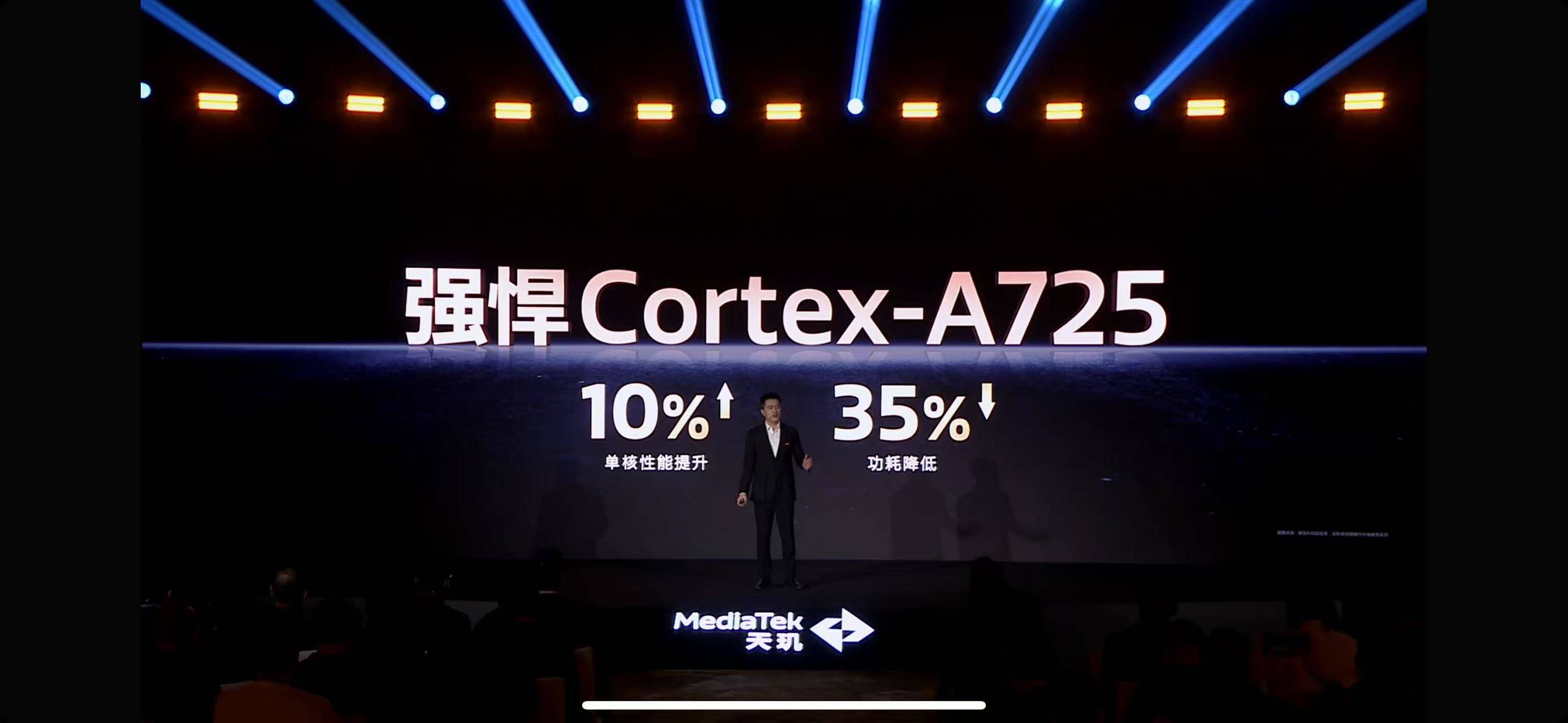 我們再來看這顆A725核心,它相較于上一代A715,單核性能提升了10%,功耗下降了35%,能效提升明顯,全大核設(shè)計則將8個A725的能效優(yōu)勢有機地疊加起來,讓天璣8400 多核性能和能效直接碾壓同級。