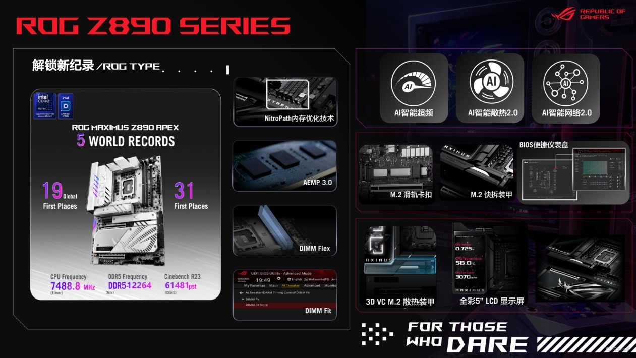 同時(shí),針對酷睿Ultra 200S系列,各大主板廠商也推出了自家的“黑科技”,如華碩Z890系列獨(dú)有的NitroPath內(nèi)存優(yōu)化技術(shù)、AEMP 3.0一鍵超頻技術(shù)以及DIMM Fit/DIMM Flex自動(dòng)超頻技術(shù),這些黑科技可充分發(fā)揮DDR5內(nèi)存性能,將內(nèi)存速率推向新的高度,華碩表示這代主板可實(shí)現(xiàn)DDR5-12264MHz的驚人速率!