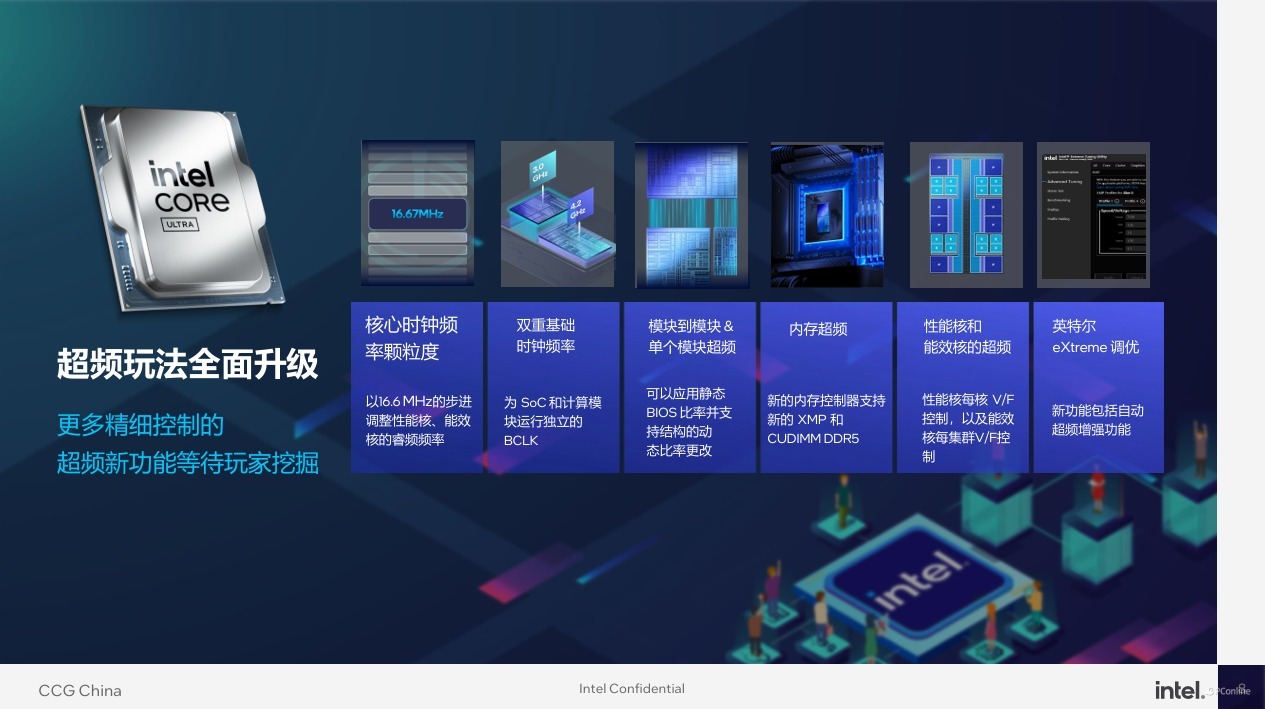 后續(xù)Intel也介紹了酷睿Ultra 200S系列在超頻方面的可玩性還是非常多的,這也是不少玩家所忽視的地方,除了上面提到的各大板廠支持AI超頻外,Intel針對玩家也提供了不少超頻玩法。