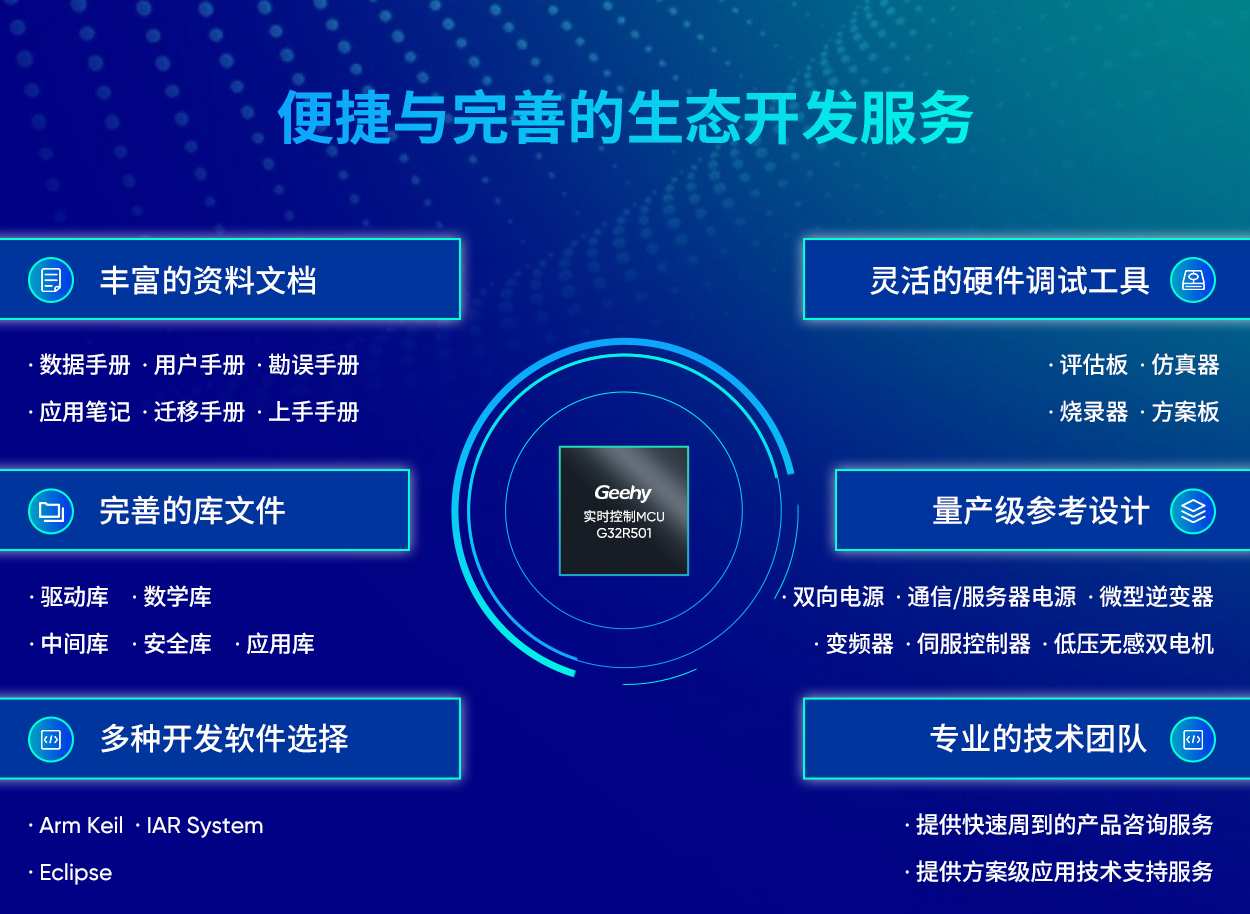 G32R501 提供了完善的生態(tài)開發(fā)體系,助力工程師高效開發(fā),實現(xiàn)更短的項目落地周期: