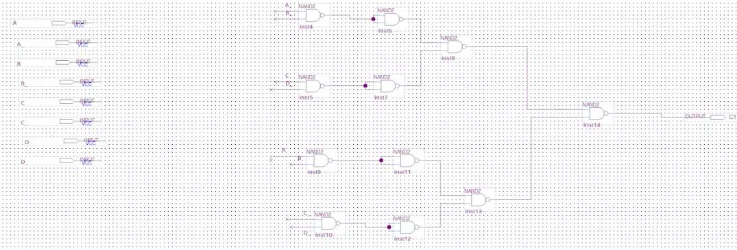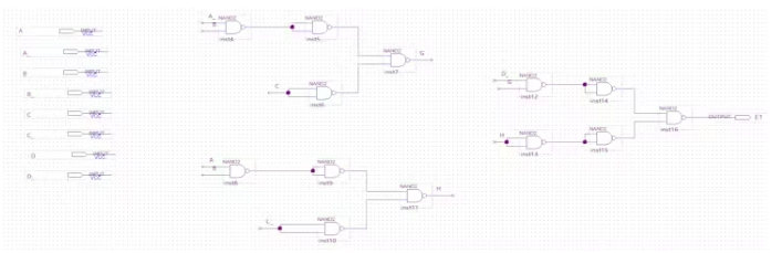 然后將E1處的最后3個輸入NAND門分解,將方程變換為: