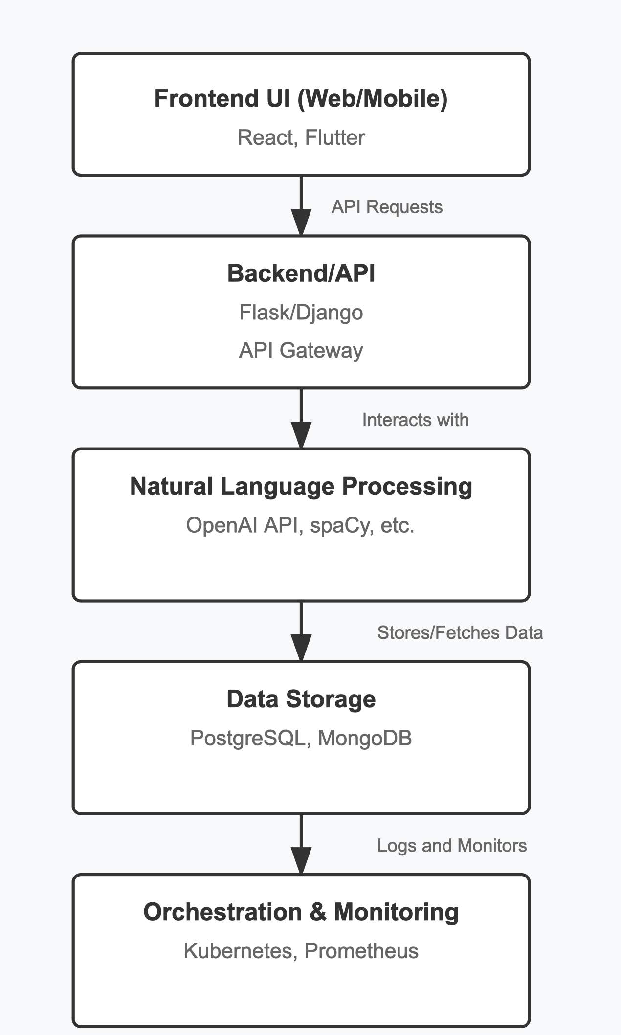· 語言理解層 :合并NLP庫,如斯派西或NLDK,或使用外部服務(wù),如對話流或拉薩。