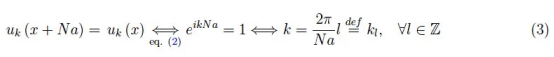 我們現(xiàn)在使用的是波-文-卡曼邊界條件。這涉及到分配一個(gè)偶數(shù)整數(shù) N 所以水晶的"音量"是 L = 無(wú) ? A ,然后無(wú)限復(fù)制,在邊緣施加周期性條件: