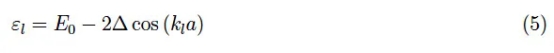 與…有關(guān) l 由公式(4)給出。為了了解離散的能量水平是如何分布的,我們首先觀察到起始函數(shù) ε ( k 是均勻的,因此關(guān)于坐標(biāo)軸是對(duì)稱(chēng)的,在[-- π/a, 0]。這意味著, k l , 我.e., k ? N/ 2 相當(dāng)于 ε ( k ),即,傳導(dǎo)帶的頂部。作為 l 能量水平下降,直到它們到達(dá)傳導(dǎo)帶的底部。其余的 k l > 0是對(duì)稱(chēng)的0 k l < 0.在圖4中我們報(bào)告了 N = 10.