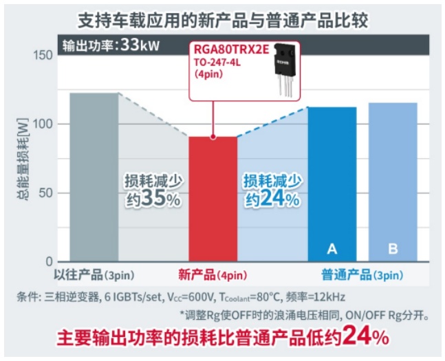 圖4:三相逆變器采用第4代IGBT“RGA系列”和以往普通產(chǎn)品時(shí)的比較
