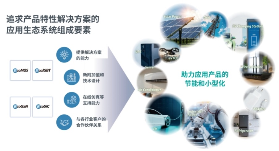 本文介紹了組成“Power Eco Family”的四大品牌。羅姆對(duì)每一個(gè)品牌都非常注重產(chǎn)品開(kāi)發(fā)速度、應(yīng)用產(chǎn)品設(shè)計(jì)過(guò)程中的支持體系強(qiáng)化以及穩(wěn)定供應(yīng)等,并會(huì)考慮合作生產(chǎn)和聯(lián)合開(kāi)發(fā)等方式。通過(guò)助力應(yīng)用產(chǎn)品的節(jié)能和小型化,為減少全球的耗電量和產(chǎn)品用材量貢獻(xiàn)力量;并通過(guò)與所有利益相關(guān)者共同擴(kuò)大“Power Eco Family”,為創(chuàng)建應(yīng)用生態(tài)系統(tǒng)做出貢獻(xiàn)(圖6)。