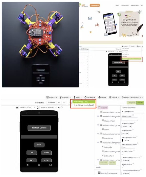 在電路方面,首選ESP32板,但該項目可以很容易地控制與Arduino板。ESP板的藍牙功能是無線通信的首選,并創(chuàng)建了一個簡單的應(yīng)用程序來控制。這款應(yīng)用程序允許你用簡單的命令控制機器人的動作,比如行走、轉(zhuǎn)彎和跳躍。