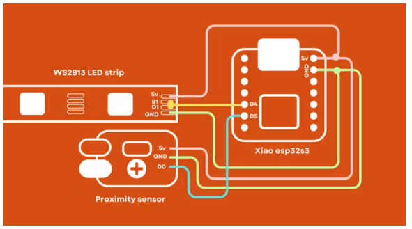 晾干的時(shí)候,讓我們把注意力轉(zhuǎn)移到電子產(chǎn)品上。在我們的燈的核心,我們將使用一個(gè)微小的ESP32板,稱(chēng)為小ESP32S3。這對(duì)于從互聯(lián)網(wǎng)上獲取時(shí)間和確保led接收到正確的信號(hào)至關(guān)重要。