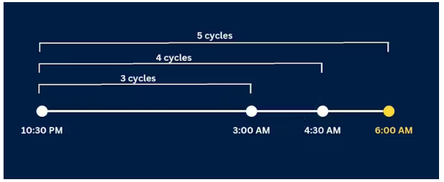 他們根據(jù)睡眠周期計(jì)算最佳就寢時(shí)間:使用平均90分鐘的睡眠周期長(zhǎng)度,他們以90分鐘為單位計(jì)算出幾種可能的就寢時(shí)間。這些睡覺(jué)時(shí)間是為了讓你在鬧鐘響之前完成一定數(shù)量的完整睡眠周期。