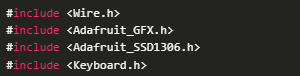 在這個(gè)草圖中,我們使用兩個(gè)主要庫(kù):一個(gè)用于運(yùn)行OLED屏幕,另一個(gè)用于執(zhí)行鍵盤(pán)功能。