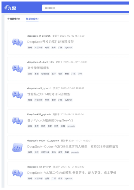 用戶(hù)現(xiàn)可通過(guò)“光合開(kāi)發(fā)者社區(qū)”中的“光源”板塊訪(fǎng)問(wèn)并下載相關(guān)模型,或直接登錄[www.sourcefind.cn]搜索“DeepSeek”,即可基于DCU平臺(tái)快速部署和使用相關(guān)模型。