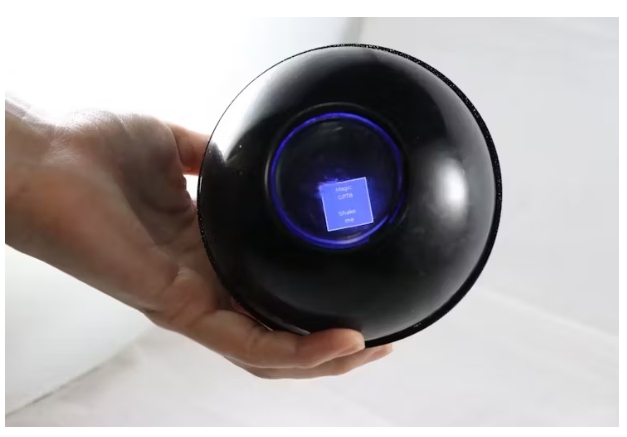 在一個(gè)純粹的靈感時(shí)刻,我決定將這個(gè)塑料神秘遺物與現(xiàn)代AI的不可阻擋的力量融合在一起。因?yàn)楹苊黠@,一個(gè)簡單的隨機(jī)答案玩具缺少的是一個(gè)能夠生成更多隨機(jī)無意義內(nèi)容的完整ChatGPT管道。當(dāng)上天交給你一個(gè)壞掉的算命師時(shí),你就把它綁在互聯(lián)網(wǎng)上,看看會(huì)發(fā)生什么,對(duì)吧?