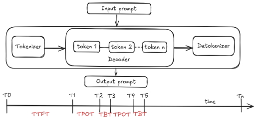 該度量代表了在解碼階段中每個后續(xù)代幣產(chǎn)生的延遲,直接影響了感知的響應速度。優(yōu)化TBT對于流體用戶體驗很重要,尤其是在諸如聊天之類的實時應用程序中。然而,TBT無法揭示令牌生成過程中攤位的幅度和時間。高尾巴TBT可以在生成過程的開始時表明一個攤位,這會大大破壞用戶體驗,但是此信息并非僅由TBT捕獲。此外,TBT不考慮非統(tǒng)一的代幣生成策略,例如投機解碼,其中可以在單個迭代中生成多個令牌。
