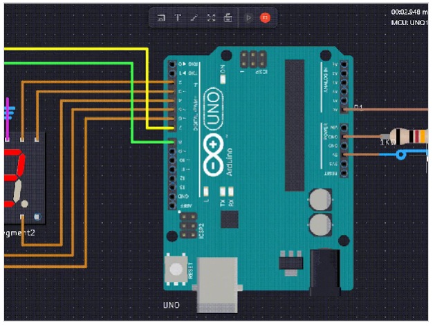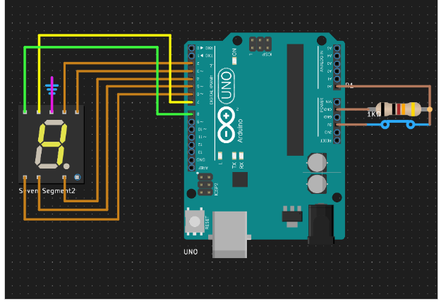 當(dāng)按下開(kāi)關(guān)時(shí),Arduino UNO通過(guò)生成1到6之間的隨機(jī)數(shù)來(lái)模擬擲骰子。這個(gè)數(shù)字然后顯示在七段顯示器上,提供骰子滾動(dòng)結(jié)果的視覺(jué)表示。Dice Simulator項(xiàng)目是一種簡(jiǎn)單而有效的方法,用于演示在基于arduino的項(xiàng)目中使用隨機(jī)數(shù)生成,并且可以擴(kuò)展到各種交互式應(yīng)用程序,例如游戲或概率實(shí)驗(yàn)。