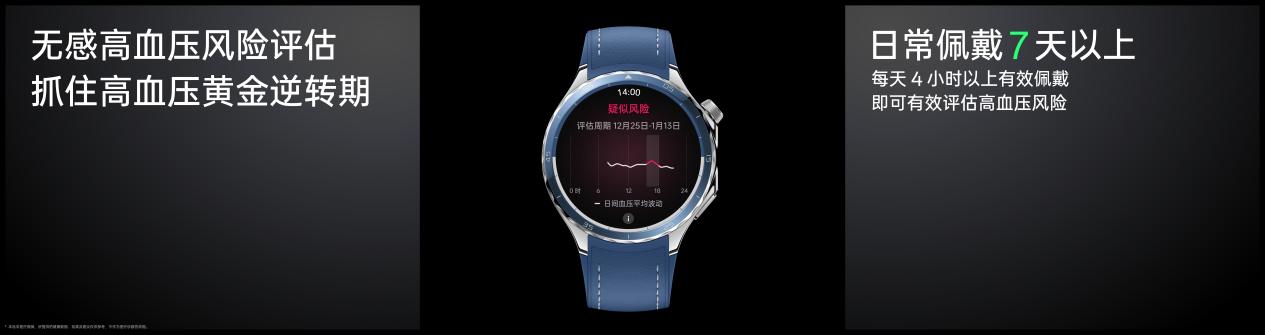 用戶只需佩戴 7 天以上,每天有效佩戴 4 小時(shí)以上,手表就能為你評(píng)估高血壓風(fēng)險(xiǎn)。只需要像日常一樣用表,無(wú)需特殊表帶,也無(wú)需額外操作。