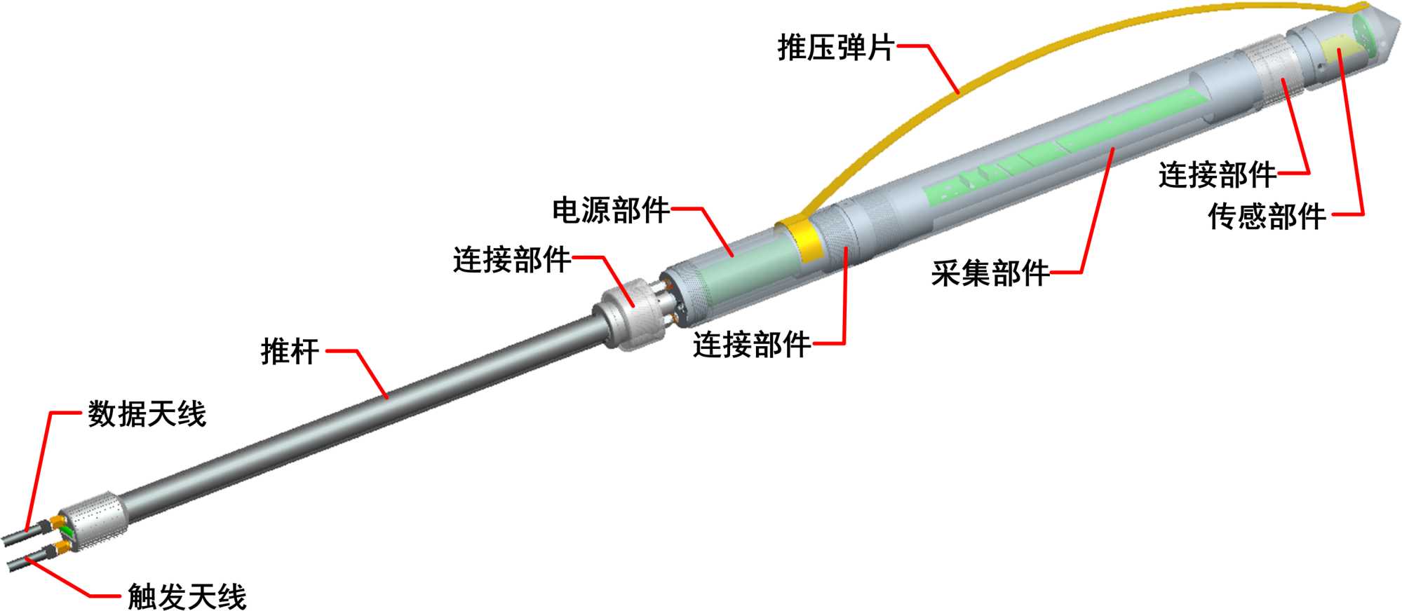 圖3. 巷道掘進(jìn)中孔中地震高精度預(yù)報(bào)系統(tǒng)無(wú)線探頭結(jié)構(gòu)示意圖