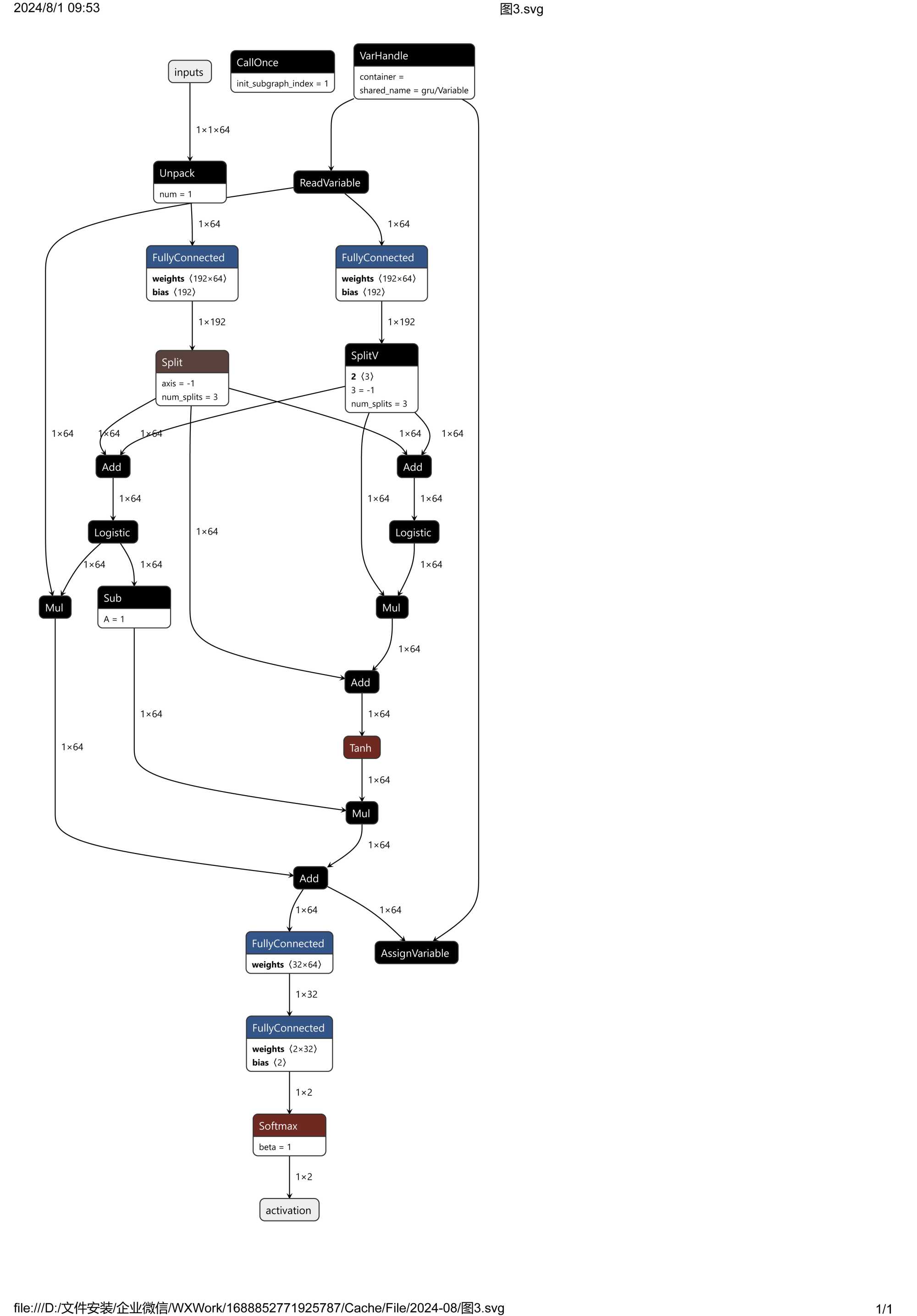 上面通過訓練,得到了一個龐然大物。之所以龐大,是因為我們采用了unroll參數(shù)將其展開,發(fā)現(xiàn)模型其實由很多相同的模型塊組成,GRU模塊如圖2所示。