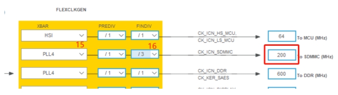 SDMMC2的時鐘配置為200MHZ