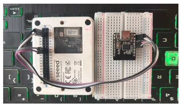 ?將Wio端子的RX引腳連接到甲殼蟲ESP32 C6的TX引腳。