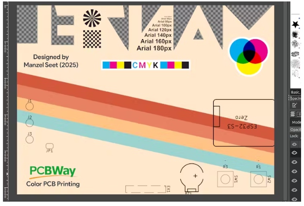 這個(gè)設(shè)計(jì)的靈感來源于一個(gè)復(fù)古的彩色主題,上面貼著我的名字字體。板的輪廓是有趣的,因?yàn)樗且粋€(gè)奇怪的形狀周圍的字母,這將展示PCB制造的能力。