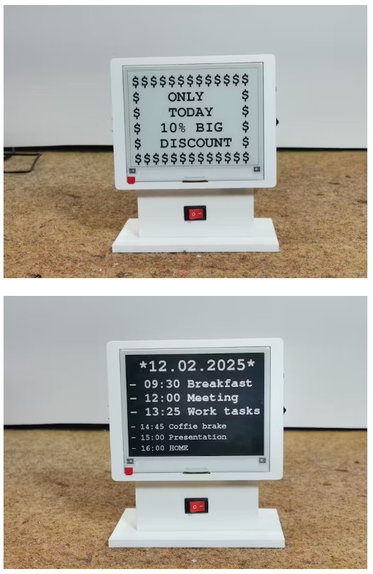 最后是一個(gè)簡(jiǎn)短的結(jié)論。電子紙顯示器可以在照明或自然光下清晰顯示圖像/文本,無需背光,功耗更低,部分刷新壽命更長(zhǎng)。能見度幾乎是180度。本項(xiàng)目中展示的設(shè)備使用了一個(gè)內(nèi)置ESP32S微控制器的電子紙顯示模塊和一個(gè)封閉在合適外殼內(nèi)的附加組件,幾乎不需要硬件干預(yù),所以我們只需要安裝草圖,就可以得到一個(gè)功能齊全的最終產(chǎn)品。