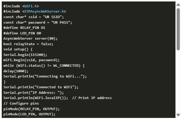 這段代碼創(chuàng)建了一個帶有web界面的智能WiFi插頭,允許您切換繼電器(連接到設備)和用于視覺反饋的LED。