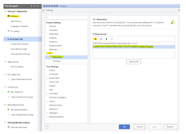 我們可以首先將前面生成的HLS IP導(dǎo)入到Vivado中。
