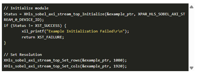 因此,在應(yīng)用程序中,我們需要導(dǎo)入XHls_sobel_axi_stream_top .h并聲明XHls_sobel_axi_stream_top結(jié)構(gòu)。