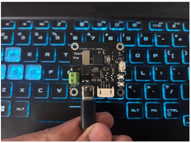 將MicroSD卡插入ESP32-S3 AI攝像機(jī)。