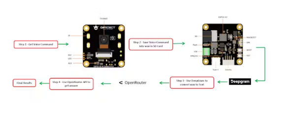 曾經(jīng)希望使用DFRobot ESP32-S3 AI相機(jī)創(chuàng)建聲控ChatGPT嗎?這篇博客將指導(dǎo)你完成整個(gè)過(guò)程。我們將引導(dǎo)您完成以下步驟:通過(guò)內(nèi)置麥克風(fēng)收集用戶命令,將音頻保存為SD卡上的WAV文件,使用Deepgram API將音頻轉(zhuǎn)換為文本,查詢OpenAI的響應(yīng),并在串行終端中打印答案。
