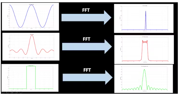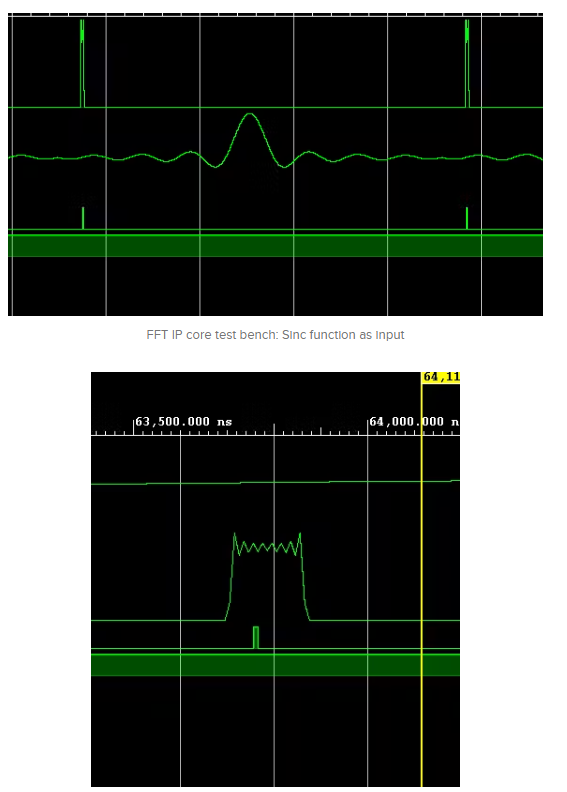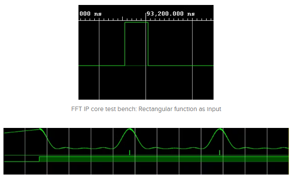 該圖提供了應(yīng)用于三種不同類型信號的FFT變換的快速回顧。我們期望在我們的Vivado模擬中看到相同的結(jié)果。