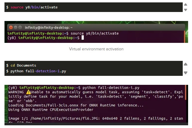 你需要激活名為y8的Python虛擬環(huán)境,并運(yùn)行位于Documents中的fall-detection-i.py腳本,按照以下步驟操作: