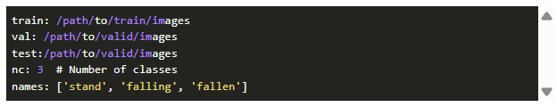 數(shù)據(jù)集中的每個(gè)圖像都應(yīng)該有相應(yīng)的注釋來(lái)指定邊界框和類(lèi)標(biāo)簽。對(duì)于墜落檢測(cè),有三種類(lèi)型:站立、墜落和墜落。