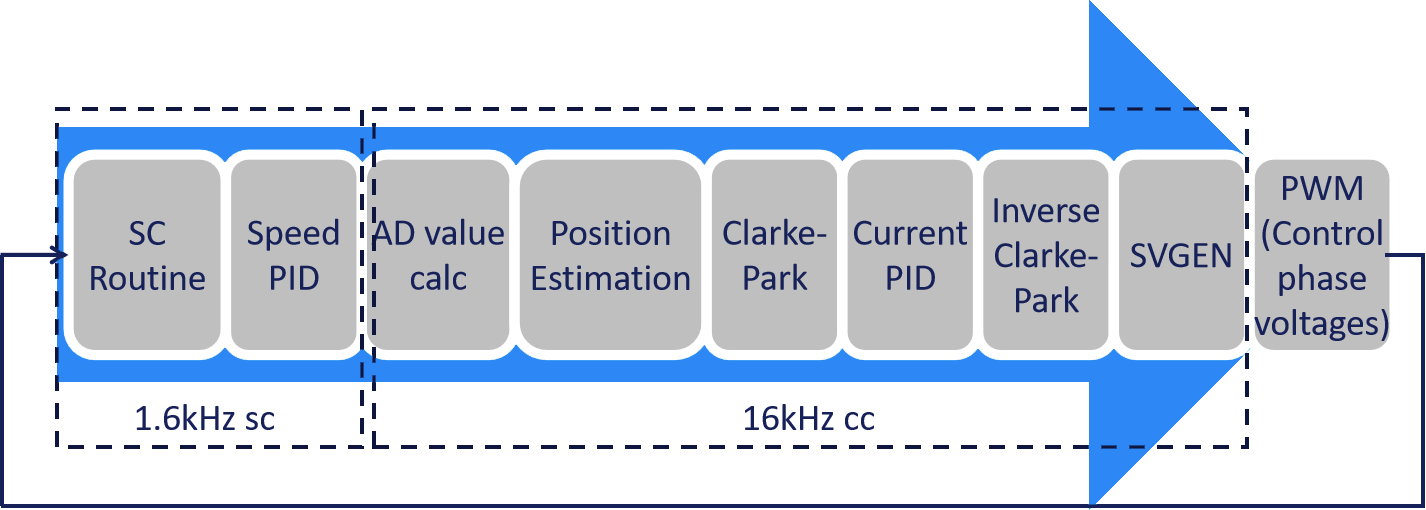 采用G32R501芯片在240MHz主頻下,單核FLASH中運(yùn)行時(shí)(路徑:ITCM → FACC → Flash),控制環(huán)路周期:62.5μs,優(yōu)化等級(jí)為O2狀態(tài)下,環(huán)路執(zhí)行時(shí)間:<19.8μs(同類產(chǎn)品執(zhí)行時(shí)間為24μs)。
