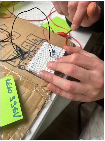 為了將土壤電池和耳機的能量連接起來,我們想出了一個邏輯系統(tǒng)?;旧?,我們想要一個系統(tǒng),其中電容器儲存能量,當(dāng)它充滿時,由于晶體管,它釋放電力給led。所以如果led閃爍,你就會知道有能量,你就可以沉浸在VR體驗中。