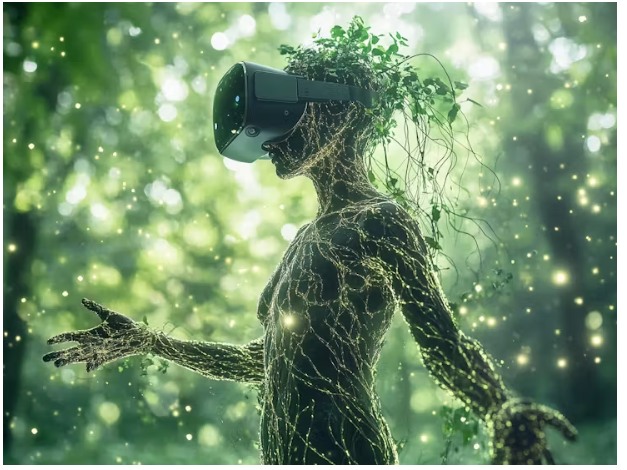 “拔掉資本主義,扎根現(xiàn)實”是一種虛擬現(xiàn)實體驗,由地球本身提供動力,利用土壤電池產(chǎn)生能量。當(dāng)佩戴VR頭顯時,用戶經(jīng)歷了數(shù)字化轉(zhuǎn)型,成為一棵樹或一棵植物,完全沉浸在一種沒有資本主義需求的存在中。