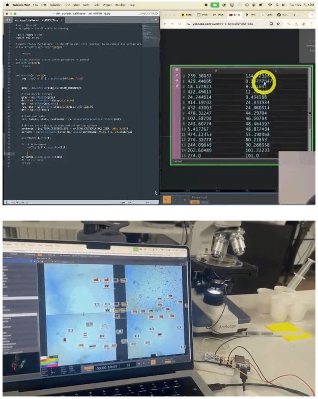 這些動作通過連接到電腦上的顯微鏡被捕獲,在TouchDesigner中對圖像進行分析。該系統(tǒng)識別關(guān)鍵特征并將其繪制出來,創(chuàng)建一個坐標(biāo)矩陣,然后將其轉(zhuǎn)換為聲音。
