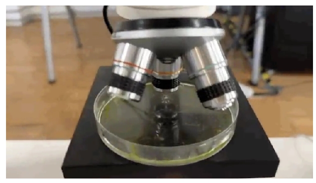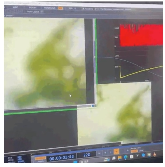 在開發(fā)和測試原型工作的過程中,我們測試了幾種不同的顯微鏡變焦倍數(shù)、培養(yǎng)皿的設(shè)置、不同的振動強度和不同的含微生物的水介質(zhì)。最后,我們得出結(jié)論,使用來自不同池塘的不同來源的水的混合物,中等強度的振動(150 / 255),顯微鏡放大10倍,可以獲得最佳效果。這些參數(shù)從相機傳感器提供了一個足夠清晰的視覺效果,可以在TouchDesigner文件中使用。