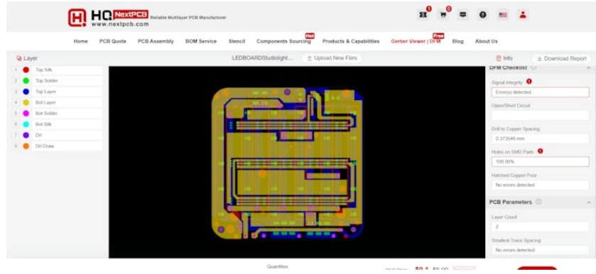 此外,NextPCB有自己的Gerber Viewer和DFM分析軟件。