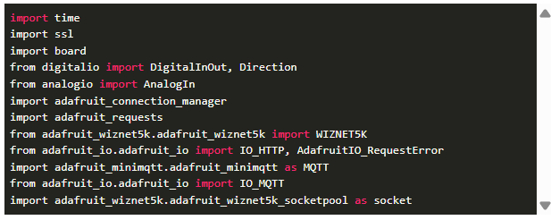參考Adafruit的MQTT API網(wǎng)站,您可以在MQTT Connection Details小節(jié)的HOST Name中找到broker的參數(shù)。當(dāng)我們將用戶(hù)身份驗(yàn)證信息存儲(chǔ)在secrets.py文件中時(shí),我們可以簡(jiǎn)單地從secrets JSON中獲取這些信息并加載到MQTT函數(shù)中。將is_ssl設(shè)置為T(mén)rue允許我們連接到8883端口上的Adafruit MQTT Api。最后,我們通過(guò)引用前面的代碼為MQTT客戶(hù)機(jī)設(shè)置池和上下文。