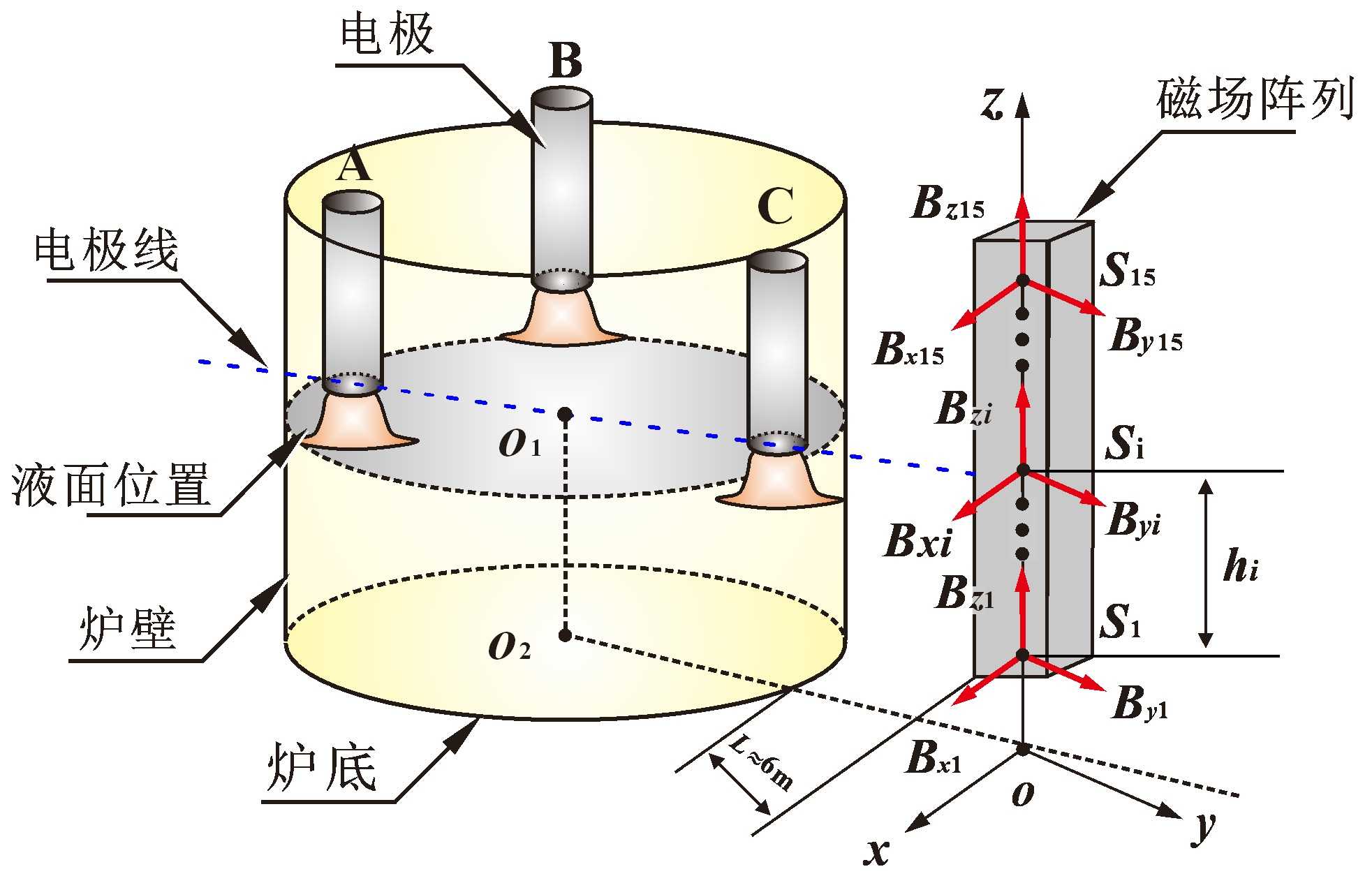 礦熱爐是冶金領(lǐng)域的關(guān)鍵設(shè)備,用于高溫加工和反應(yīng)過程。礦熱爐的電極端部位置對于爐內(nèi)熱場分布、能量利用效率以及產(chǎn)品質(zhì)量有著重要影響[1]。因此,精確檢測和控制電極端部位置成為提高礦熱爐運(yùn)行性能的關(guān)鍵。