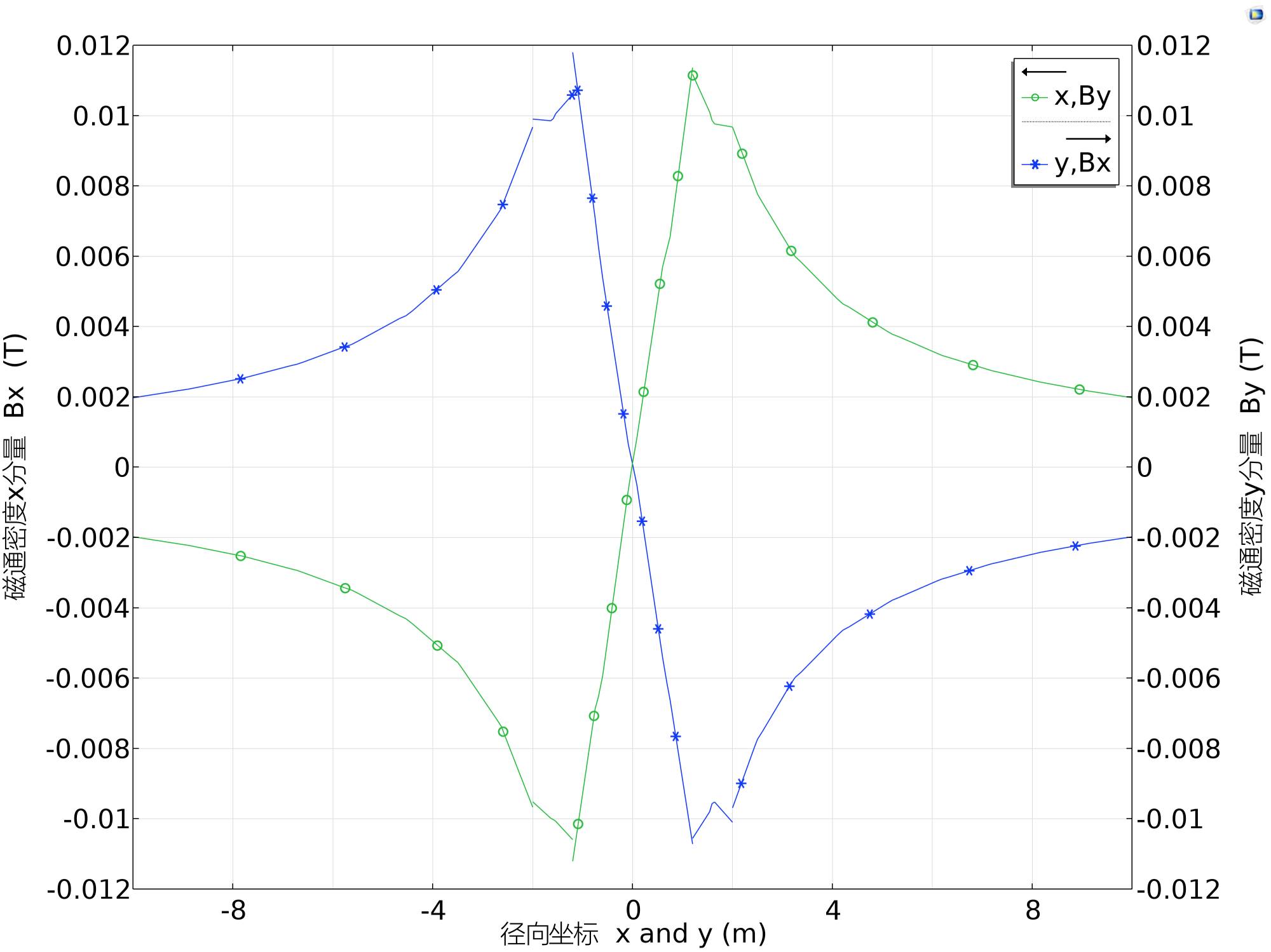 圖6. 二維軸對稱分量中的磁通密度模