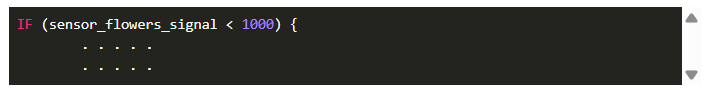 每當(dāng)變量sensor_flowers_signal中的先前存儲(chǔ)值小于1000時(shí),就執(zhí)行塊的內(nèi)部。