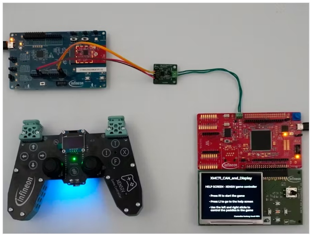 它支持第三代或更高版本的Xbox控制器或英飛凌的XENSIV游戲控制器,通過帶有CAN FD Shield TLE9371VSJ的CAN FD總線將數(shù)據(jù)傳輸?shù)終IT_XMC71_EVK_LITE_V1板。后者處理數(shù)據(jù)并使用自定義圖形適配器XMC71_EVK_DisplayAdapter_V11在屏幕上顯示受Pong啟發(fā)的演示游戲。