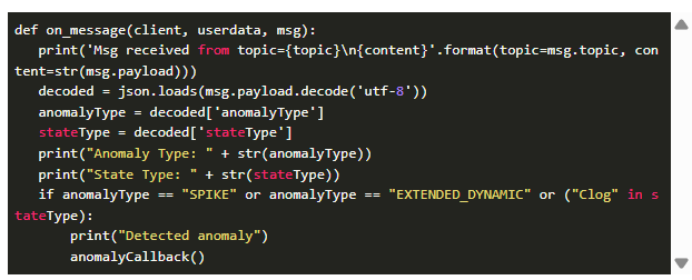 首先,我們連接到MQTT服務(wù)器并訂閱PDM_EVENT主題。接收到的事件在on_message()函數(shù)中處理